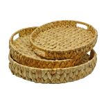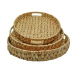 Δίσκοι ψάθινοι από υάκινθο, στρογγυλοί με χειρολαβές, πολλαπλών χρήσεων σε διαφορετικά μεγέθη. Διαστάσεις: 38x6εκ., 34x5εκ. και 30x5εκ.