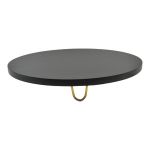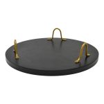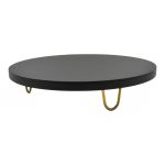 Διακοσμητικός δίσκος σε στρογγυλό σχήμα, κατασκευασμένος από ξύλο σε μαύρο χρώμα. Διαθέτει ποδαράκια σε χρυσό ματ χρώμα προσθέτοντας μια αίσθηση λάμψης και κομψότητας. Ιδανικός για διακοσμητικά αντικείμενα όπως κεριά ή βάζα