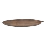 Διακοσμητικός δίσκος κατασκευασμένος από ξύλο σε σχήμα φύλλου, σε καφέ χρώμα. Μπορεί να τοποθετηθεί πάνω σε τραπεζάκια ή ράφια εμπλουτίζοντας τη διακόσμησή σας με φυσική ομορφιά.