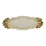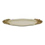 Διακοσμητικός δίσκος με λεπτομερείς χρυσές ανάγλυφες διακοσμήσεις και λουλουδάτα μοτίβα στις λαβές. Είναι ιδανικός τόσο για καθημερινή χρήση όσο και για διακοσμητικό κομμάτι στον χώρο σας. Προσθέτει μια vintage αισθητική στην παρουσίαση του τραπεζιού σας.