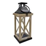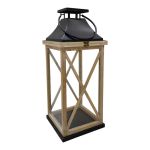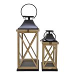 Φανάρια επιδαπέδια κατασκευασμένα από ξύλο σε μπεζ αντικέ απόχρωση και μαύρη μεταλλική οροφή. Διαθέτουν τζάμια κ πορτάκια για την τοποθέτηση των κεριών. Το σετ αποτελείται από 2 φανάρια διαφορετικών διαστάσεων.