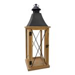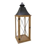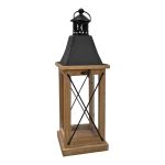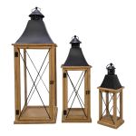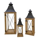 Φανάρια επιδαπέδια κατασκευασμένα από ξύλο σε καφέ απόχρωση και αντικέ μαύρη μεταλλική οροφή. Διαθέτουν τζάμια κ πορτάκια για την τοποθέτηση των κεριών. Το σετ αποτελείται από 3 φανάρια διαφορετικών διαστάσεων.