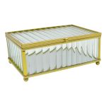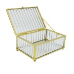 Κουτί αποθήκευσης κατασκευασμένο από διάφανο γυαλί και χρυσό μεταλλικό πλαίσιο. Είναι ιδανικό για την οργάνωση κοσμημάτων ή την αποθήκευση άλλων μικρών αντικειμένων.