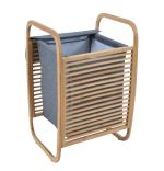 Καλάθι άπλυτών με σκελετό από ξύλο μπαμπού ιδιαίτερα ανθεκτικό και αφαιρούμενο σάκο από πολυεστερικό ύφασμα σε γκρι χρώμα. Ο σάκος πλένεται στο πλυντήριο ρούχων στους 30 βαθμούς.