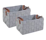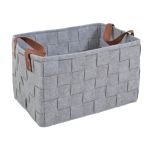 Καλάθι γενικής χρήσης κατασκευασμένο από πολυεστέρα σε γκρι χρώμα. Διαθέτει δερμάτινες λαβές σε καφέ ταμπα χρώμα για εύκολη μεταφορά. Είναι ιδανικό για οργάνωση και αποθήκευση πραγμάτων αλλά και για διακόσμηση του χώρου.