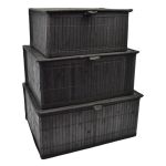 Σετ τριών τεμαχίων κουτιά αποθήκευσης με καπάκι από ξύλο μπαμπού σε μαύρο χρώμα. Διαστάσεις: 32x25x15εκ., 29x23x14εκ. και 24x18x11εκ.