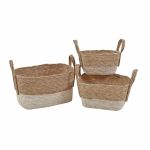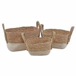 Σετ τριών τεμαχίων καλάθια με χειρολαβές, ψάθινα, δίχρωμα σε μπεζ και καφέ χρώμα. Διάσταση μεγ.:38x27x30εκ.,μεσ.:29x24x16εκ.,μικ.:24x24x21εκ.