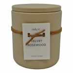 Απολαύστε την ατμόσφαιρα ηρεμίας με το αρωματικό κερί σε τσιμεντένιο μπεζ δοχείο με καπάκι. Η μοντέρνα σχεδίαση του δοχείου προσθέτει μια διακοσμητική πινελιά σε κάθε χώρο, ενώ το velvet rosewood άρωμα θα σας μεταφέρει σε έναν κόσμο από ευχάριστες νότες