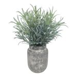 Διακοσμητικό τεχνητό φυτό με μακριά πράσινα φύλλα σε γκρι κεραμική γλάστρα. Ιδανικό για τη διακόσμηση του σπιτιού σας καθώς μένει αναλλοίωτο στον χρόνο.