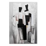 Πίνακας ελαιογραφία σε τυπωμένο καμβά, απεικονίζει δύο φιγούρες, οι οποίες είναι κατασκευασμένες από γεωμετρικά σχήματα σε αποχρώσεις του μαύρου, λευκού και γκρι. Η σαγρέ υφή ενισχύει τα σχήματα, κάνοντάς τα να ξεχωρίζουν ακόμα περισσότερο.