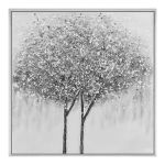 Πίνακας ελαιογραφία σε τυπωμένο καμβά με σχέδιο δέντρο, ασημί κορνίζα και διακόσμηση ασημί ανάγλυφες, σαγρέ λεπτομέρειες.