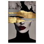 Πίνακας ελαιογραφία σε τυπωμένο καμβά με αφηρημένο γυναικείο πορτρέτο σε γκρι και μαύρους τόνους, διακοσμημένο με χρυσές λεπτομέρειες. Ιδανικός για σύγχρονους και minimal χώρους, ταιριάζει σε σαλόνι, υπνοδωμάτιο ή γραφείο.