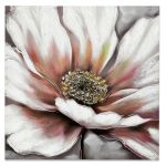 Πίνακας ελαιογραφία σε τυπωμένο καμβά με κοντινή απεικόνιση λουλουδιού σε λευκούς και ροζ τόνους. Τα ανάγλυφα πέταλα δίνουν αίσθηση βάθους, ενώ το λεπτομερές κέντρο με υφή και λαμπερές πινελιές προσθέτει ζωντάνια.