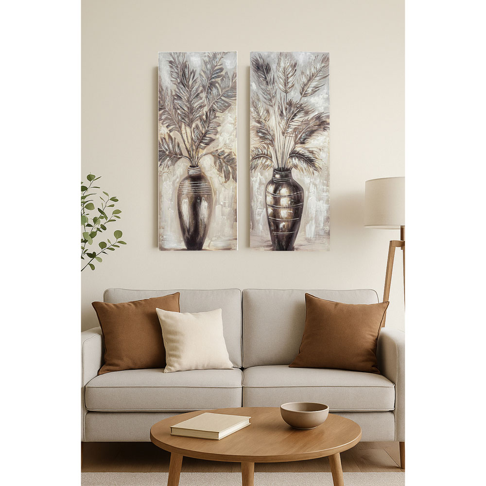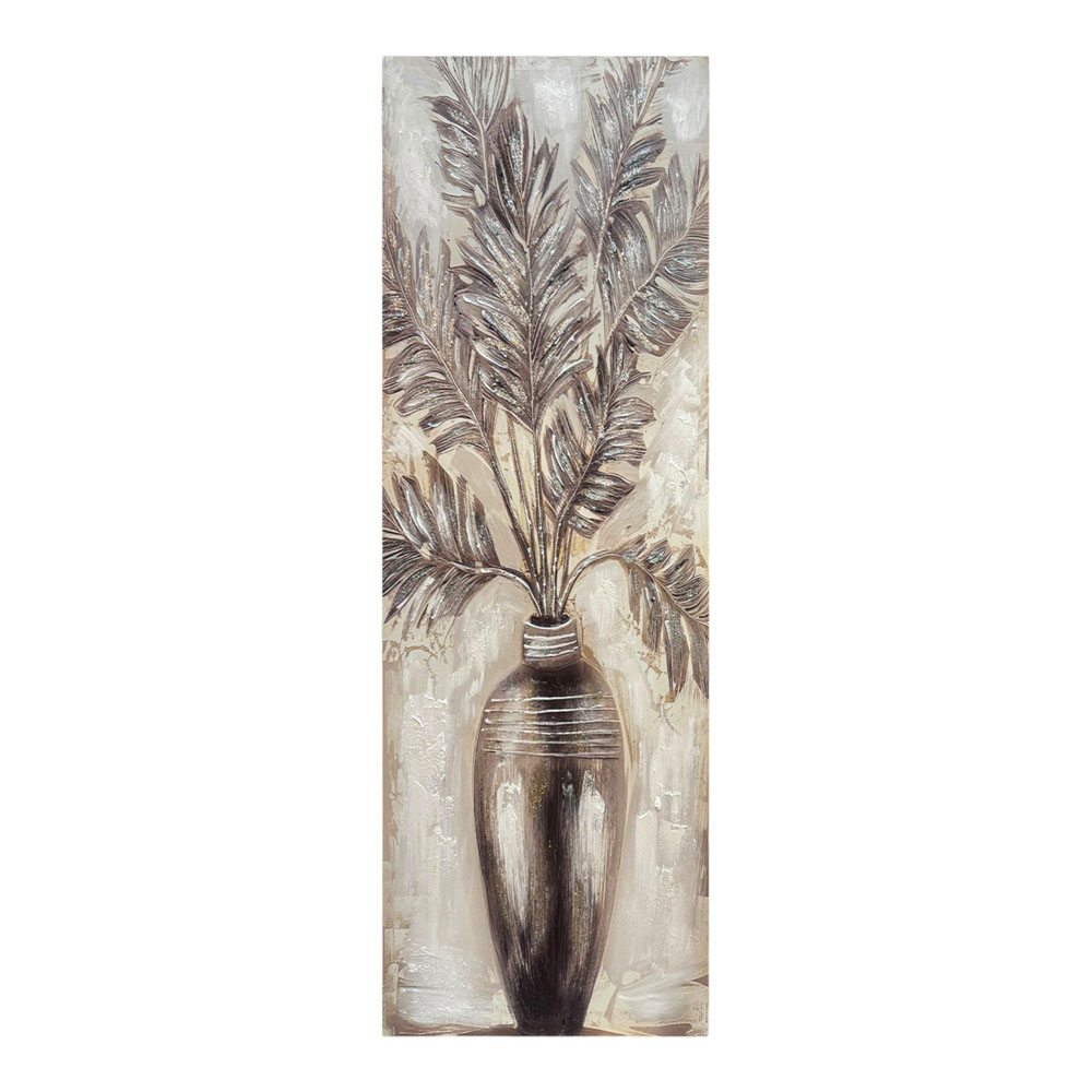 Πίνακας ελαιογραφία σε τυπωμένο καμβά με βάζο και φυλλώδες κλαδιά σε γήινες αποχρώσεις. Η ανάγλυφη υφή και οι μεταλλικές λεπτομέρειες αναδεικνύουν το μοτίβο, προσφέροντας κομψότητα και διαχρονικό χαρακτήρα.Ιδανική επιλογή για κάθε χώρο.
