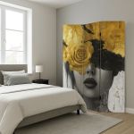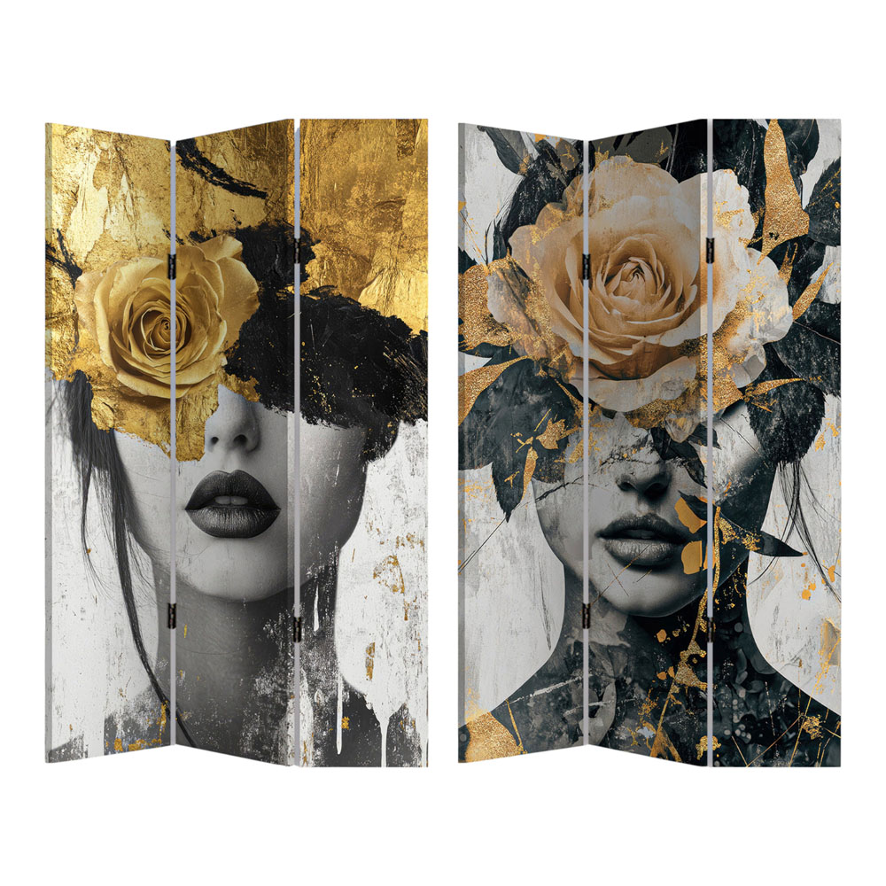 ΠΑΡΑΒΑΝ ΤΡΙΠΛΟ ΣΕ ΤΥΠΩΜΕΝΟ ΚΑΜΒΑ ΜΕ ΓΥΝΑΙΚΕΙΟ ΠΟΡΤΡΕΤΟ ΚΑΙ ΧΡΥΣΑ ΛΟΥΛΟΥΔΙΑ 180x120x2,5εκ.ANKOR