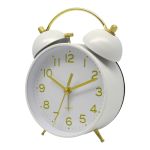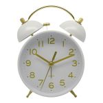 Ξυπνητήρι μεταλλικό με αθόρυβο μηχανισμό για έναν ευχάριστο ύπνο, ρετρό στυλ, σε άσπρο χρώμα με ματ φινίρισμα και χρυσές λεπτομέρειες. Η ευανάγνωστη οθόνη του παρέχει εύκολη πρόσβαση στην ώρα κατά τη διάρκεια της νύχτας.