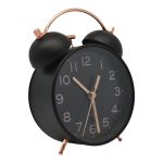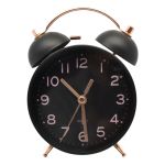 Ξυπνητήρι μεταλλικό με αθόρυβο μηχανισμό για έναν ευχάριστο ύπνο, ρετρό στυλ, σε μαύρο χρώμα με ματ φινίρισμα και rose gold λεπτομέρειες. Η ευανάγνωστη οθόνη του παρέχει εύκολη πρόσβαση στην ώρα κατά τη διάρκεια της νύχτας.