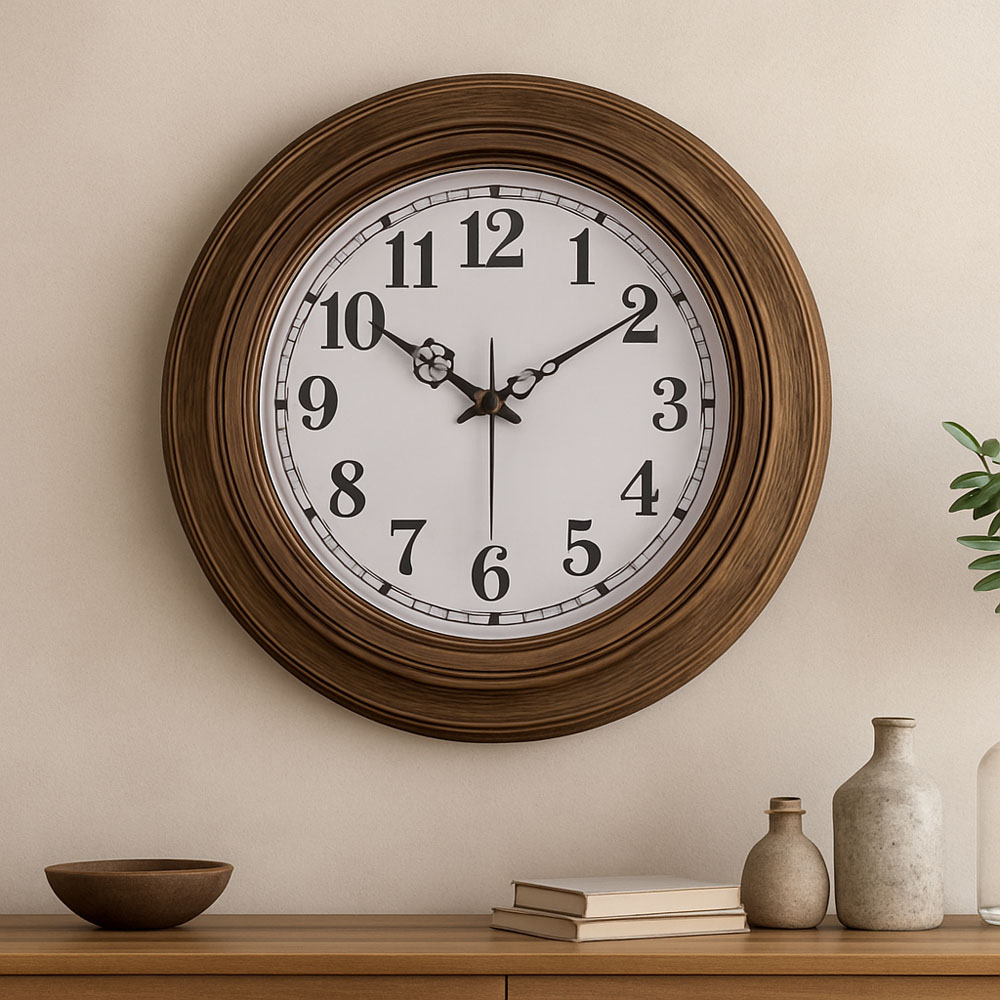 Ρολόι τοίχου με πλαστικό πλαίσιο σε αντικέ μπρονζέ απόχρωση και κλασικό καντράν με μαύρους αριθμούς. Οι δείκτες του αναδεικνύουν το vintage στυλ του, ενώ ο αθόρυβος μηχανισμός εξασφαλίζει απόλυτη ησυχία. Ιδανικό για κάθε χώρο του σπιτιού ή του γραφείου.
