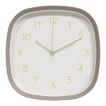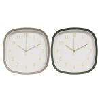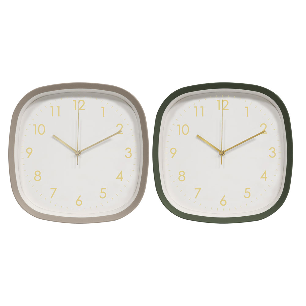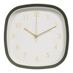Ρολόι τοίχου με πλαστικό πλαίσιο και μοντέρνο τετράγωνο σχεδιασμό με στρογγυλεμένες γωνίες, ιδανικό για κάθε χώρο του σπιτιού ή του γραφείου. Το καθαρό καντράν με διακριτικούς αριθμούς και χρυσές λεπτομέρειες προσφέρει εύκολη ανάγνωση της ώρας, ενώ παράλληλα αναβαθμίζει αισθητικά τον χώρο. Η συσκευασία περιλαμβάνει δύο κομψές αποχρώσεις πλαισίου, μπεζ και σκούρο πράσινο, που συνδυάζονται εύκολα με διαφορετικά στυλ διακόσμησης, από μοντέρνο έως πιο φυσικό και ζεστό. Ο αθόρυβος μηχανισμός εξασφαλίζει ήρεμη λειτουργία, καθιστώντας το ιδανική επιλογή για υπνοδωμάτιο, σαλόνι ή γραφείο.