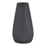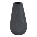 Κεραμικό βάζο με ανάγλυφη υφή και περίτεχνο σχήμα σε ανθρακί χρώμα. Κατάλληλο για να περιέχει νερό, ιδανικό για την ανάδειξη φρέσκων λουλουδιών ή διακοσμητικών κλαδιών. Προσδίδει κομψότητα και στυλ σε κάθε χώρο.