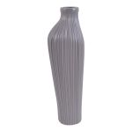 Κεραμικό βάζο επίμηκες με ανάγλυφη υφή και περίτεχνο σχήμα σε γκρι χρώμα. Κατάλληλο για να περιέχει νερό, ιδανικό για την ανάδειξη φρέσκων λουλουδιών ή διακοσμητικών κλαδιών. Προσδίδει κομψότητα και στυλ σε κάθε χώρο.