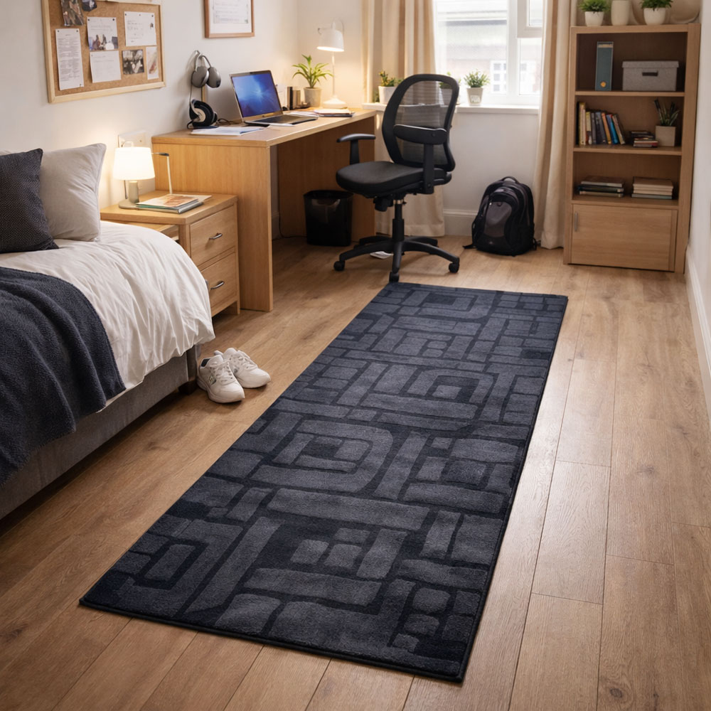 Χαλί διαδρόμου πολυεστερικό, με μοντέρνο γεωμετρικό σχέδιο σε γκρι αποχρώσεις που ταιριάζει εύκολα σε κάθε χώρο. Η απαλή του υφή προσφέρει άνεση στο πάτημα, ενώ το ανθεκτικό πολυεστερικό υλικό εξασφαλίζει μεγάλη διάρκεια χρήσης και εύκολη συντήρηση. Ιδανικό για διάδρομο, υπνοδωμάτιο ή καθιστικό, προσθέτοντας ζεστασιά και κομψότητα στον χώρο.