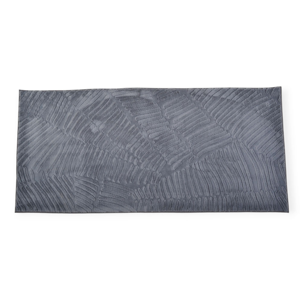 Χαλί διαδρόμου jacquard, κατασκευασμένο από πολυεστέρα υψηλής ποιότητας. Η επάνω επιφάνεια από συνθετική γούνα 400gsm προσφέρει εξαιρετικά απαλή και ζεστή αίσθηση στο πάτημα, ενώ η πίσω πλευρά από non woven 650gsm εξασφαλίζει σταθερότητα και αντοχή στην καθημερινή χρήση. Το μοντέρνο ανάγλυφο σχέδιο σε γκρι απόχρωση ταιριάζει εύκολα σε κάθε σύγχρονο χώρο, αποτελώντας ιδανική επιλογή για διάδρομο, υπνοδωμάτιο ή καθιστικό.