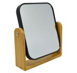 Καθρέφτης επιτραπέζιος, πλαστικός σε μαύρο χρώμα με βάση από ξύλο μπαμπού. Είναι σπαστός για εύκολη χρήση και διαθέτει δύο όψεις, η μια κανονική και η άλλη με μεγέθυνση.