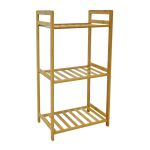 Ραφιέρα από ξύλο μπαμπού σε φυσικό χρώμα αποτελούμενη από 3 ράφια τα οποία προσαρμόζονται σύμφωνα με τις ανάγκες σας. Για μεγαλύτερη σταθερότητα στη συσκευασία συμπεριλαμβάνονται βίδες και για τον τοίχο.