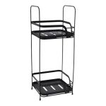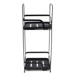 Ραφιέρα μπάνιου με μεταλλικό σκελετό σε μαύρο χρώμα και δύο πλαστικά ραφάκια. Ιδανική για αποθήκευση και οργάνωση σαμπουάν και άλλων ειδών μπάνιου.