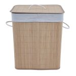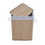 Καλάθι άπλυτών με καπάκι, από ξύλο μπαμπού σε φυσικό χρώμα, ιδιαίτερα ανθεκτικό στον χρόνο και αφαιρούμενο σάκο.H σύνθεση του υφάσματος είναι από βαμβακερό λινό κ πολυεστέρα.Είναι αναδιπλούμενο για εύκολη αποθήκευση και διαθέτει λαβές για εύκολη μεταφορά.