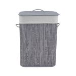 Καλάθι άπλυτών με καπάκι, από ξύλο μπαμπού σε γκρι χρώμα, ιδιαίτερα ανθεκτικό στον χρόνο και αφαιρούμενο σάκο.H σύνθεση του υφάσματος είναι από βαμβακερό λινό κ πολυεστέρα.Είναι αναδιπλούμενο για εύκολη αποθήκευση και διαθέτει λαβές για εύκολη μεταφορά.