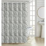 Κουρτίνα πολυεστερική 90gsm, αδιάβροχη, με λευκή βάση και σχέδιο γεωμετρικό μοτίβο σε γκρι αποχρώσεις. Στην συσκευασία συμπεριλαμβάνονται δώδεκα πλαστικοί κρίκοι. Είναι εύκολη στο καθάρισμα, μαλακή και ευχάριστη αν έρθει σε επαφή με το δέρμα.