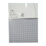 Κουρτίνα πολυεστερική 115gsm, αδιάβροχη, σε γκρι χρώμα με ζακάρ διακόσμηση. Στη συσκευασία συμπεριλαμβάνονται δώδεκα πλαστικοί κρίκοι. Είναι εύκολη στο καθάρισμα, μαλακή και ευχάριστη αν έρθει σε επαφή με το δέρμα.