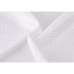 Κουρτίνα πολυεστερική 115gsm, αδιάβροχη, σε άσπρο χρώμα με ζακάρ διακόσμηση. Στη συσκευασία συμπεριλαμβάνονται δώδεκα πλαστικοί κρίκοι. Είναι εύκολη στο καθάρισμα, μαλακή και ευχάριστη αν έρθει σε επαφή με το δέρμα.