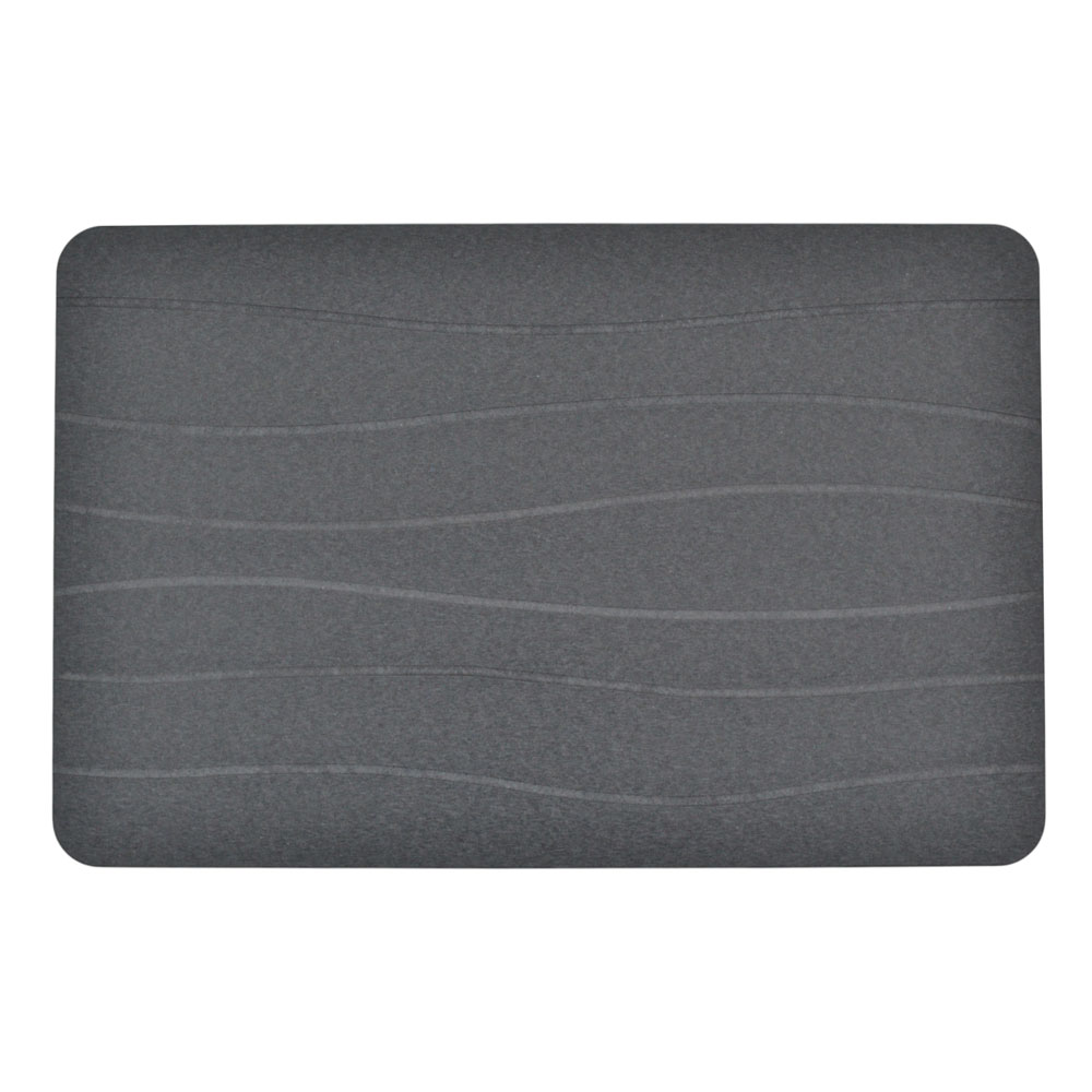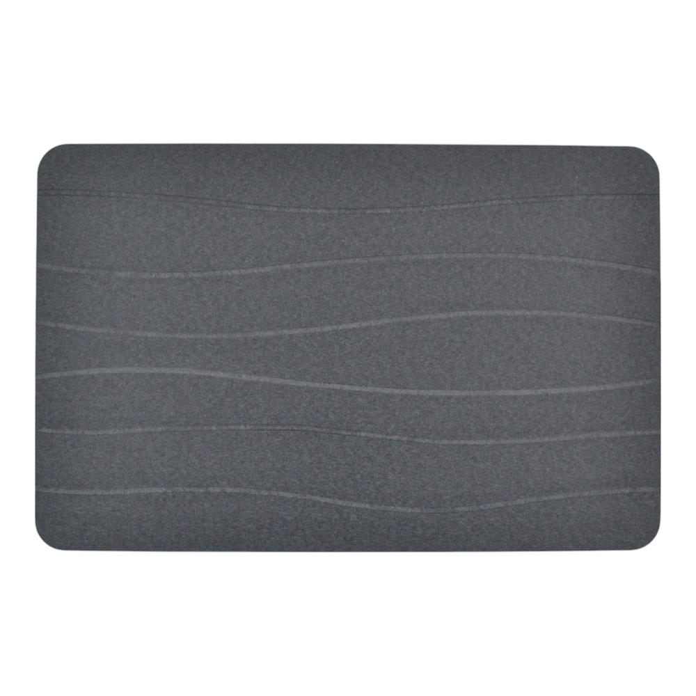 Πατάκι από διατομίτη σε γκρι χρώμα, με ανάγλυφο σχέδιο, το οποίο απορροφά γρήγορα την υγρασία, στεγνώνει άμεσα και είναι αντιολισθητικό. Ιδανικό για το μπάνιο ή την κουζίνα είναι εύκολο στο καθάρισμα και ανθεκτικό στη χρήση.