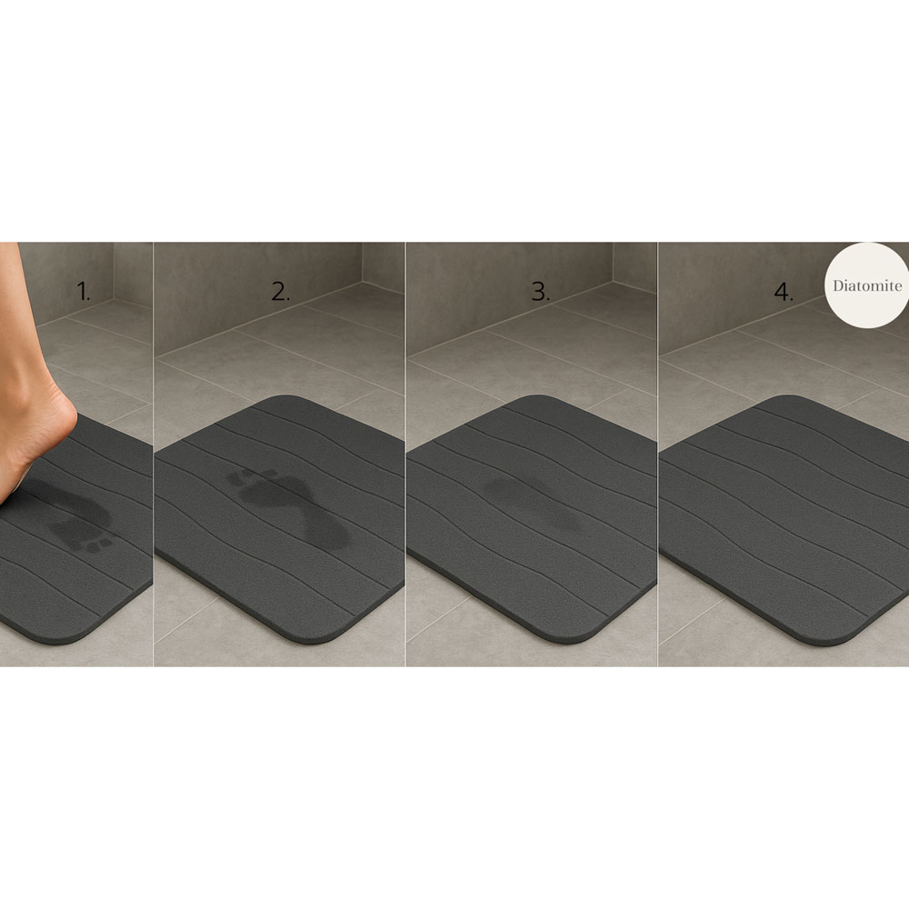 Ο διατομίτης (diatomite) είναι ένα φυσικό πέτρωμα με απορροφητικές ιδιότητες. Η ιδιαίτερη πορώδης δομή του περιέχει αμέτρητους μικροσκοπικούς πόρους, οι οποίοι απορροφούν το νερό σε δευτερόλεπτα και συγκρατούν το νερό άμεσα, με αποτέλεσμα το πατάκι να στεγνώνει γρήγορα χωρίς να παραμένει υγρασία. Χάρη σε αυτήν τη φυσική ιδιότητα, το χαλάκι διατηρείται καθαρό, δεν αναπτύσσει οσμές και προσφέρει σταθερή, αντιολισθητική επιφάνεια.