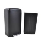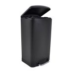 Κάδος απορριμμάτων μεταλλικός σε μαύρο ματ χρώμα και καπάκι με αυτόματο κλείσιμο. Κάδος υψηλής αντοχής, με σύστημα ανοίγματος με το πόδι, αφαιρούμενο εσωτερικό κάδο και λαβή στο πίσω μέρος για εύκολη μετακίνηση.
