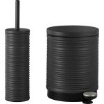 Κάδος απορριμμάτων μεταλλικός, στρογγυλός, σε ανθρακί χρώμα με ματ φινίρισμα, ανάγλυφη ριγέ υφή και καπάκι με αυτόματο κλείσιμο. Πεντάλ υψηλής αντοχής, με σύστημα ανοίγματος με το πόδι και αφαιρούμενο εσωτερικό κάδο με χειρολαβή για εύκολο καθάρισμα.