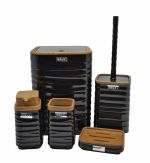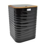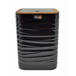 Κάδος απορριμμάτων πλαστικός,σε μαύρο χρώμα με ανάγλυφη διακόσμηση γραμμές κ εφέ ξύλου στο καπάκι.Εκτός από το μπάνιο μπορεί να χρησιμοποιηθεί οπουδήποτε, όπως στο γραφείο ή το υπνοδωμάτιο. Διαθέτει εύχρηστο καπάκι και άνοιγμα με ένα άγγιγμα.