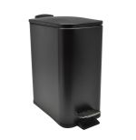 Κάδος απορριμμάτων ανοξείδωτος ορθογώνιος σε μαύρο ματ χρώμα και καπάκι με αυτόματο κλείσιμο. Πεντάλ υψηλής αντοχής, με σύστημα ανοίγματος με το πόδι και αφαιρούμενο εσωτερικό κάδο με χειρολαβή για εύκολη μετακίνηση και καθάρισμα.