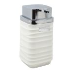 Σαπουνοθήκη για υγρό σαπούνι πλαστική σε άσπρο χρώμα με ανάγλυφη διακόσμηση γραμμές και ασημί καπάκι. Αξεσουάρ μπάνιου εξαιρετικής ποιότητας με μοντέρνο και κομψό σχεδιασμό. Συνδυάστε τα ιδανικά με αντικείμενα της υπόλοιπης σειράς.