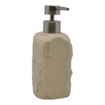 Σαπουνοθήκη για υγρό σαπούνι πολυεστερική σε μπεζ ματ απόχρωση, με ανάγλυφη επιφάνεια που θυμίζει φυσική πέτρα. Διαθέτει μοντέρνα αντλία σε ασημί ματ χρώμα και διακριτική ένδειξη Lotion, προσφέροντας κομψότητα και μοναδικό χαρακτήρα.