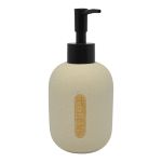 Σαπουνοθήκη για υγρό σαπούνι με μοντέρνο σχεδιασμό, κατασκευασμένο από ανθεκτικό πολυεστερικό υλικό με ελαφρώς ανάγλυφη, σαγρέ επιφάνεια που προσθέτει ξεχωριστό χαρακτήρα. Διαθέτει πρακτική μαύρη αντλία για εύκολη και ελεγχόμενη χρήση, ενώ η ξύλινη λεπτομέρεια στο μπροστινό μέρος ενισχύει τη φυσική αισθητική του.