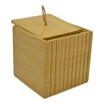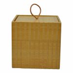 Κουτί με καπάκι για βαμβάκι ή μπατονέτες, από ξύλο μπαμπού σε φυσικό χρώμα και διακόσμηση ανάγλυφες ρίγες. Αξεσουάρ μπάνιου εξαιρετικής ποιότητας με μοντέρνο και κομψό σχεδιασμό. Συνδυάστε τα ιδανικά με αντικείμενα της υπόλοιπης σειράς.