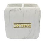 Ποτηροθήκη για οδοντόβουρτσες με χώρισμα, πολυεστερική, διακόσμηση εφέ άσπρο μάρμαρο και χρυσή επιγραφή. Αξεσουάρ μπάνιου εξαιρετικής ποιότητας με μοντέρνο και κομψό σχεδιασμό. Συνδυάστε τα ιδανικά με αντικείμενα της υπόλοιπης σειράς.
