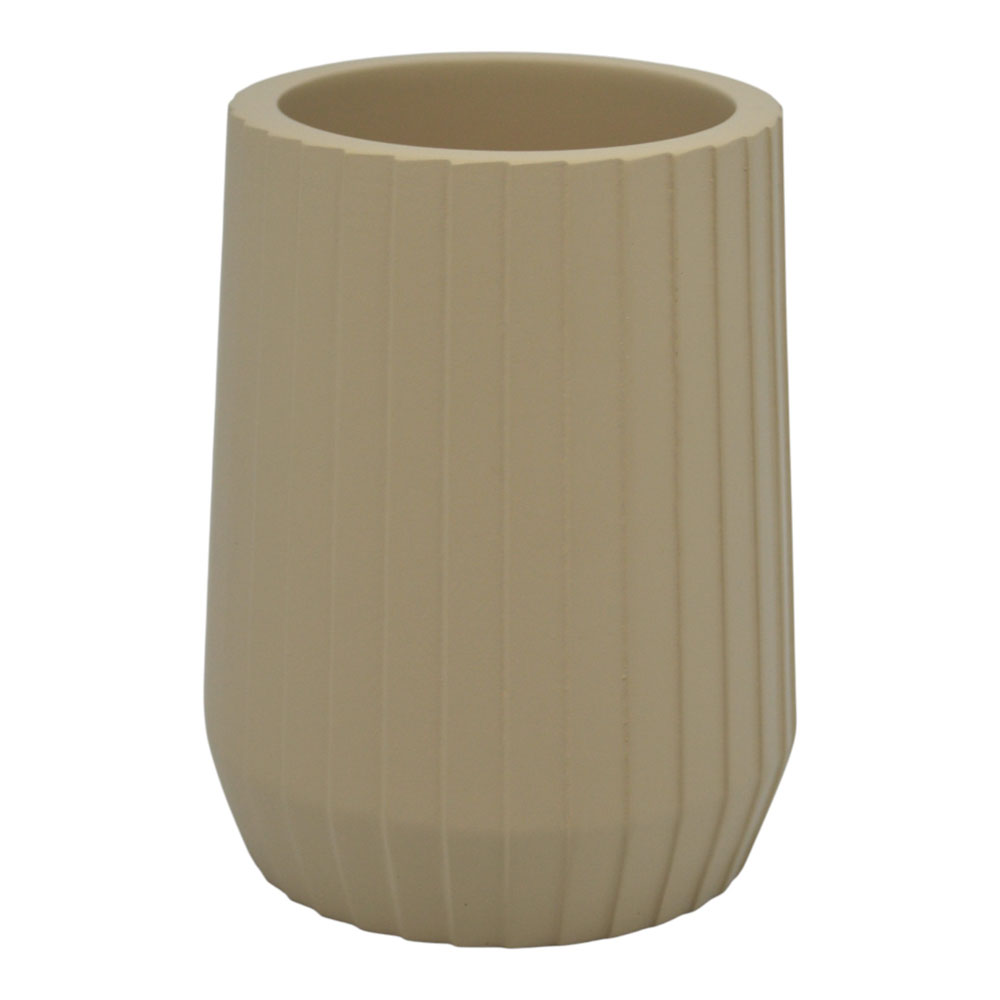 Ποτηροθήκη για οδοντόβουρτσες πολυεστερική σε μπεζ ματ απόχρωση με κάθετη ριγωτή διακόσμηση. Ο μοντέρνος σχεδιασμός της προσφέρει μίνιμαλ αισθητική και ταιριάζει ιδανικά σε κάθε μπάνιο.
