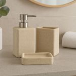 Ποτηροθήκη για οδοντόβουρτσες πολυεστερική σε μπεζ χρώμα με σαγρέ υφή. Ο μοντέρνος και κομψός σχεδιασμός της προσθέτει στυλ στο μπάνιο ενώ το ανθεκτικό υλικό του εξασφαλίζει μακροχρόνια χρήση.