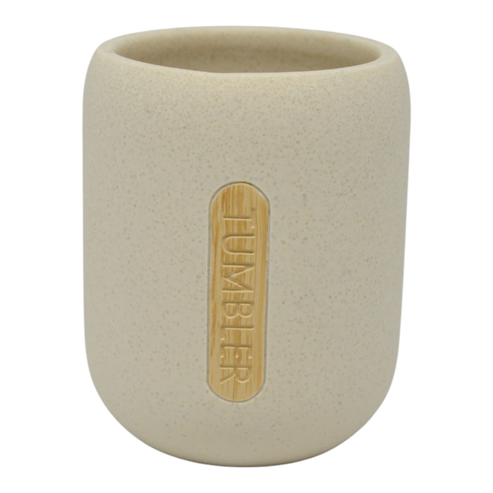 Ποτηροθήκη για οδοντόβουρτσες από ανθεκτικό πολυεστερικό υλικό με ελαφρώς ανάγλυφη, σαγρέ επιφάνεια που προσδίδει μοντέρνο χαρακτήρα. Διαθέτει πρακτικό μέγεθος για οδοντόβουρτσες ή αξεσουάρ, ενώ η ξύλινη λεπτομέρεια στο μπροστινό μέρος προσθέτει φυσική αισθητική. Ιδανική για καθημερινή χρήση, συνδυάζει λειτουργικότητα και κομψότητα σε κάθε μπάνιο.