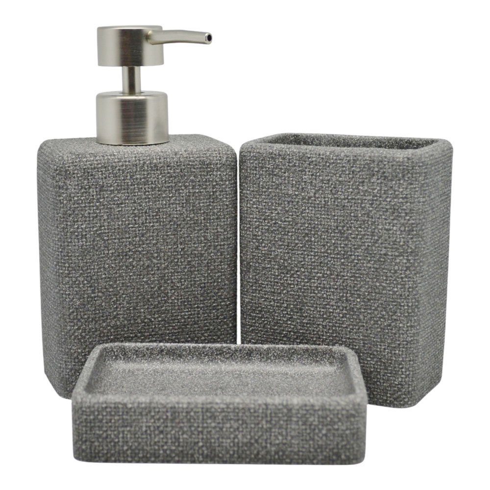 Ποτηροθήκη για οδοντόβουρτσες πολυεστερική σε γκρι χρώμα με σαγρέ υφή. Ο μοντέρνος και κομψός σχεδιασμός της προσθέτει στυλ στο μπάνιο ενώ το ανθεκτικό υλικό του εξασφαλίζει μακροχρόνια χρήση.